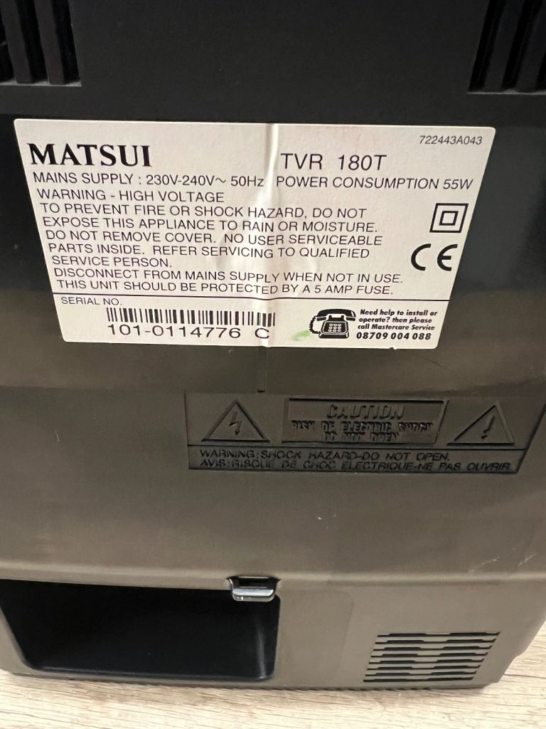 MATSUI TVR180T CRT Retro Gaming 14" TV Monitor VCR Combo No remote control