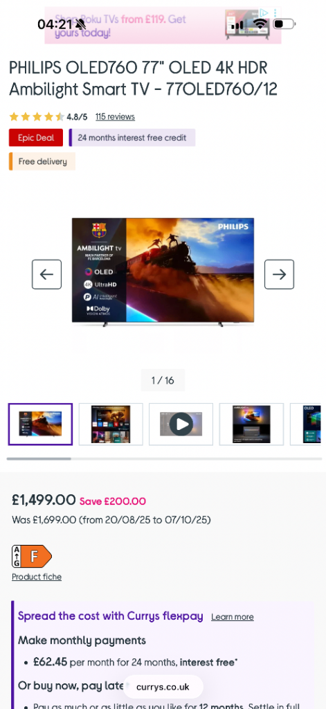 2025 OLED 77 inch Philips Ambilight 120Hz 4K Ultra HD Smart TV - 77OLED760/12 (1 month old)