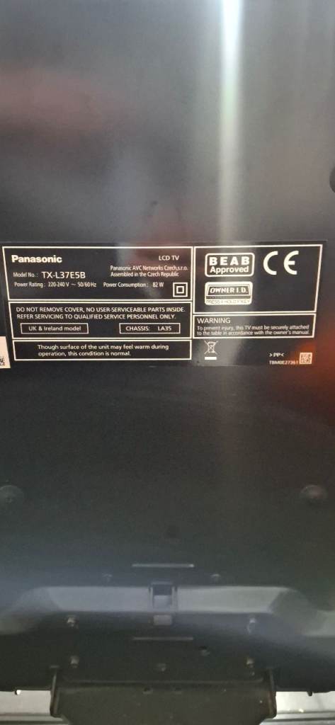 Panasonic 37 inch tv. Not a smart tv. No remote. Can use buttons on side to change settings etc. In good overall condition and working order. Kidsgrove collection.
