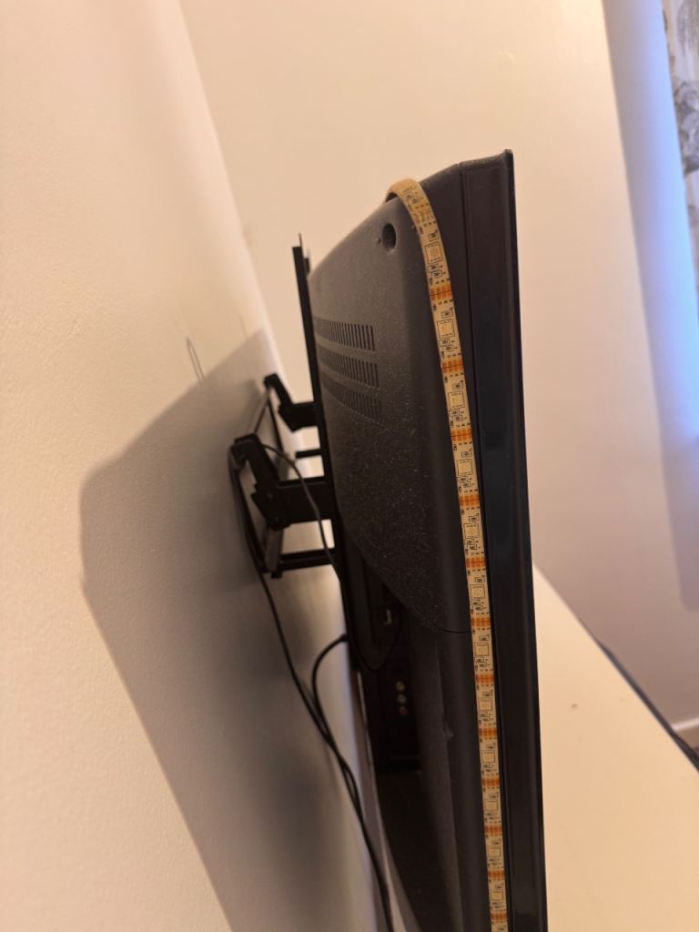It’s currently has a strip light around the edge which changes colour along with the picture colours on the TV. Still imperfect working condition and no chips or scratches on the actual TV. Comes with its original remote control.