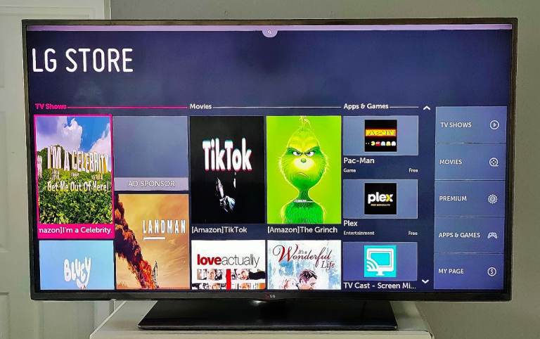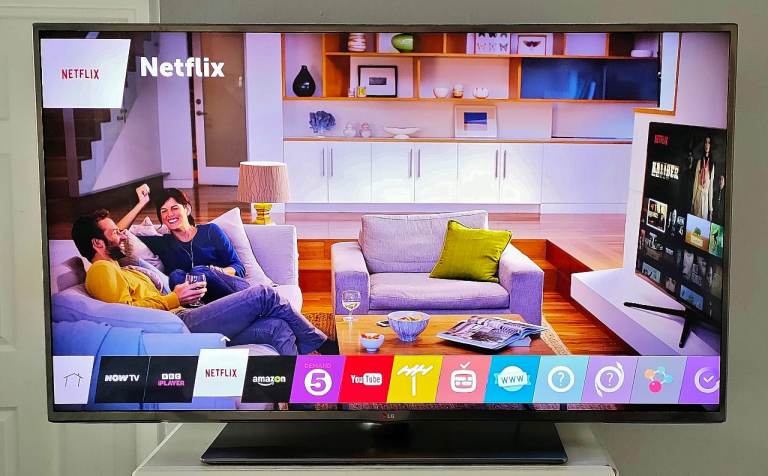 You can wirelessly connect to apps as seen in the photos and also has screen share so you can also wirelessly cast apps from your mobile phone, tablet, laptop etc onto big screen to enjoy an unlimited choice of apps. Its also firestick and gaming compatible and comes complete with the lg remote control power cable and stand all in immaculate condition.