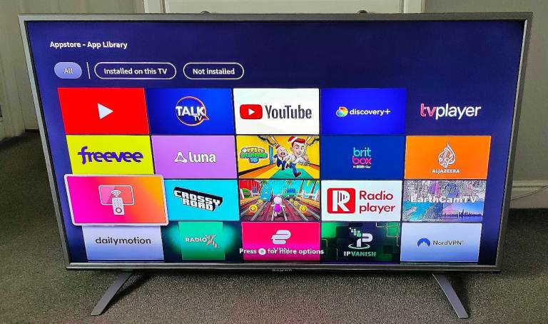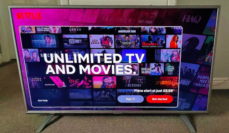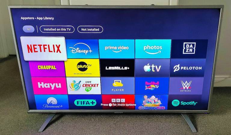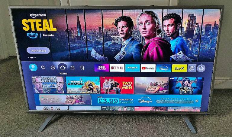 This huge screen 55" slim led tv comes with an attached firestick so you can access an unlimited amount of apps (as seen in photos). Simply put your amazon details into the tv and your away.