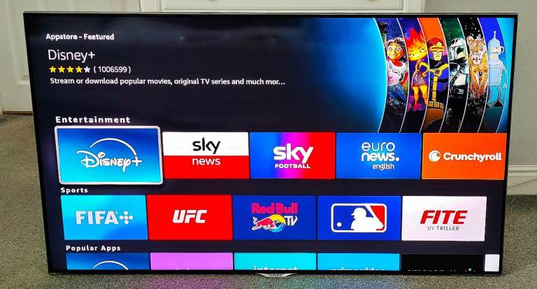 This huge screen 55" slim led tv comes with an attached firestick so you can access an unlimited amount of apps (as seen in photos). Simply put your amazon details into the tv and your away.