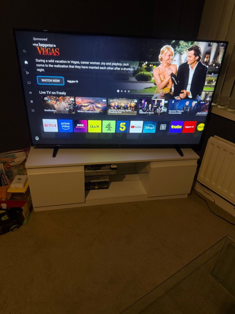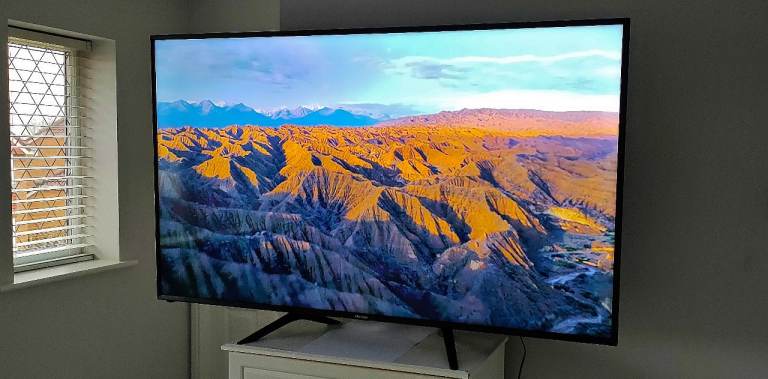 This stylish black huge size screen 65" hisense smart 4k ultra led tv is in full working order and is a clean scratch and mark free new looking condition with a stunning picture (as seen in the photos). You can easily connect wirelessly to the built in apps (no itv x). It also has built in freeview channels as standard and is firestick and gaming compatible. It comes complete with a brand new remote control power cable and legs.