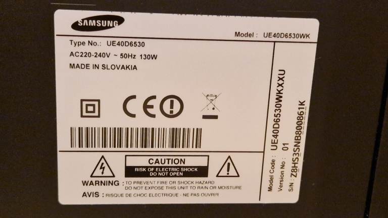 FAULTY Samsung UE40D6530 Series 6 SMART 3D Full HDLED TV