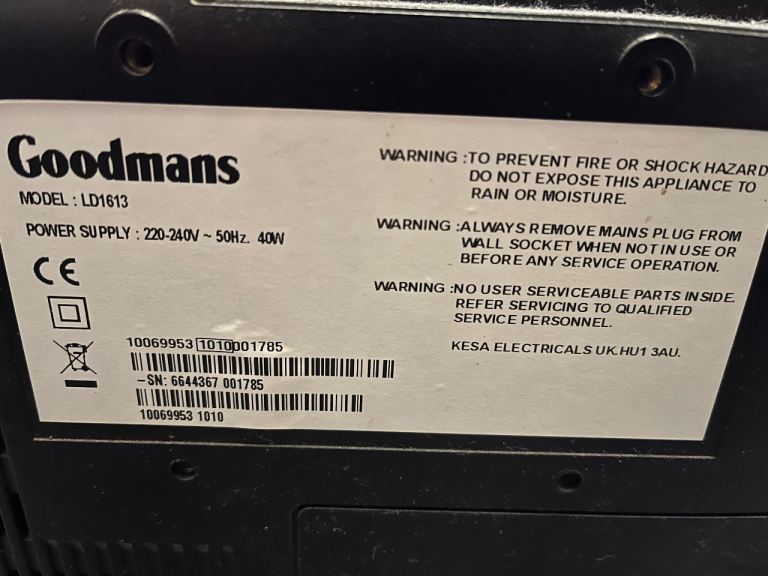 Goodmans LD1613 16" HD Ready Monitor Tested & Working No Remote
