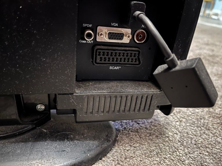 I have this monitor for sale. It can be used either with a TV or PC source and is in good working order. There is a small paint stain on the right side (photographed). Thanks for looking.
