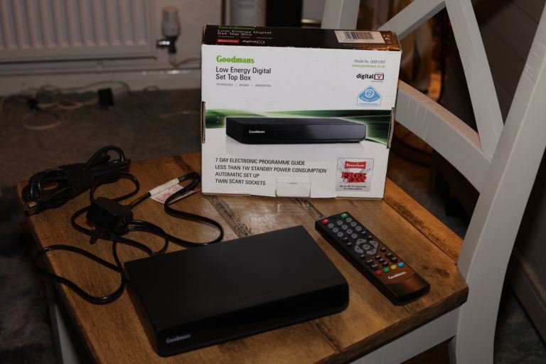 Goodmans Digital Set Top Box GDB12XIT. Used but good condition, fully working, including remote and instructions. Boxed.
