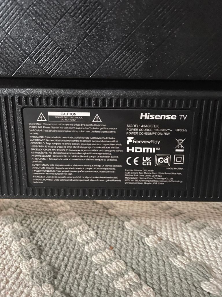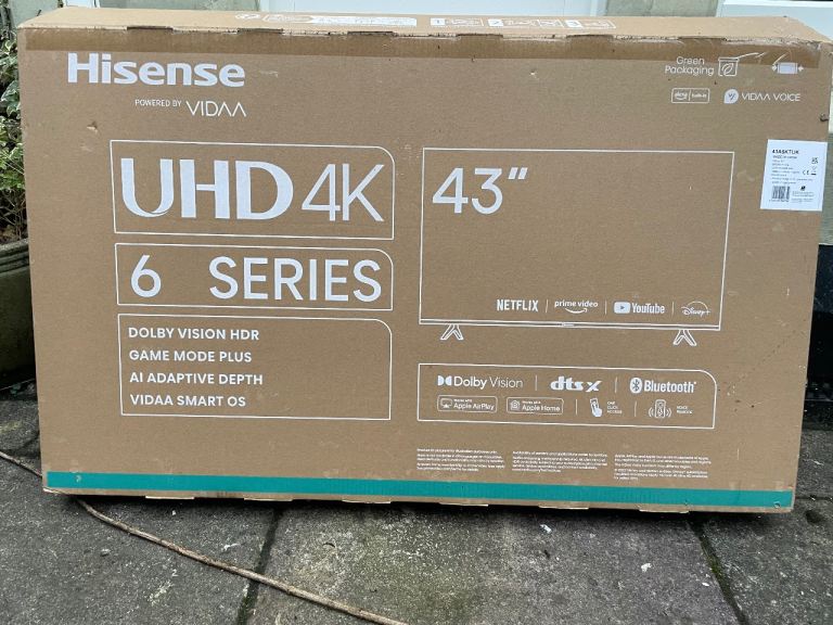 Hisense 43 Inch 43A6KTUK Smart 4K UHD HDR DLED Freeview TV