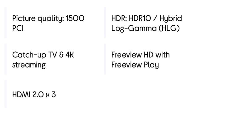 Built in Freeview WiFi Netflix YouTube Disney Plus and many more.