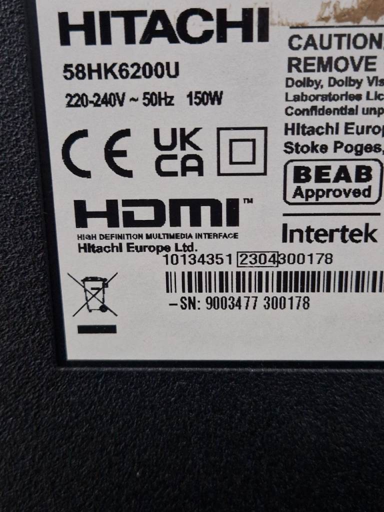 Hi I am selling a Hitachi Smart TV HDR 4K Ultra HD Freeview Led 58 inches