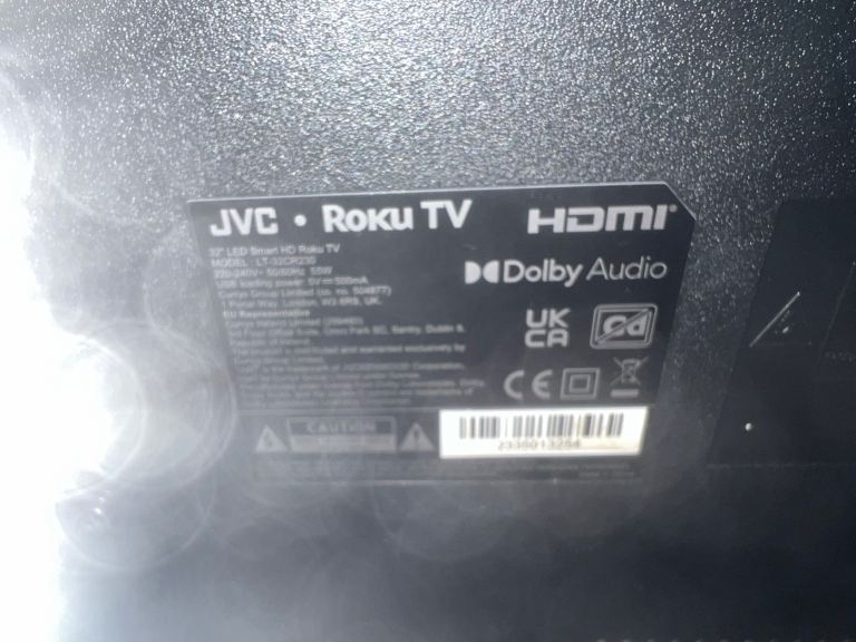 Selling a JVC 32" LED Smart HD Roku TV, model LT-32SR230. Please note the screen is damaged.no remote no stand collection from b12