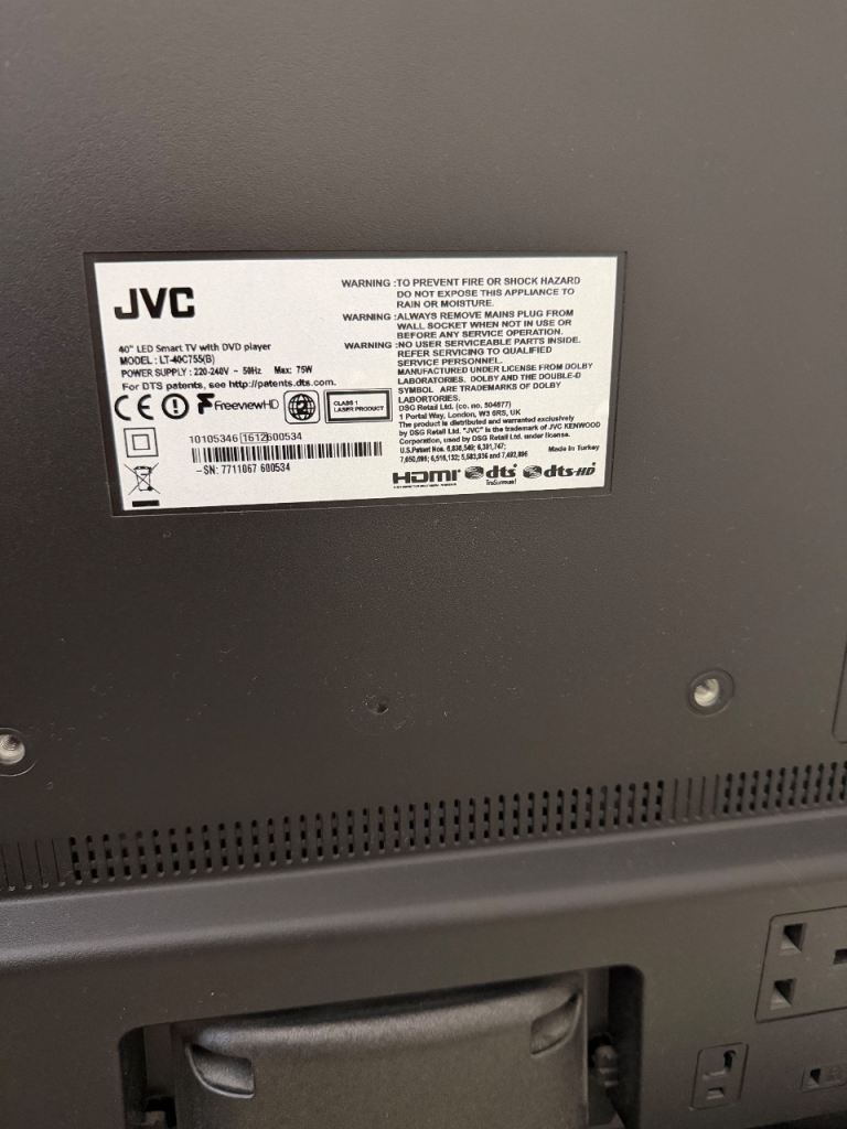 JVC 40" LED Smart TV with DVD player - MODEL: LT-40C755(B)