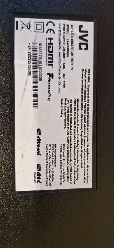 JVC 43-inch Smart 4K Ultra HD TV, model LT-42C860, in good working order.Wifi or ethernet or tether from your phone.