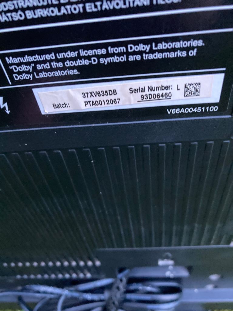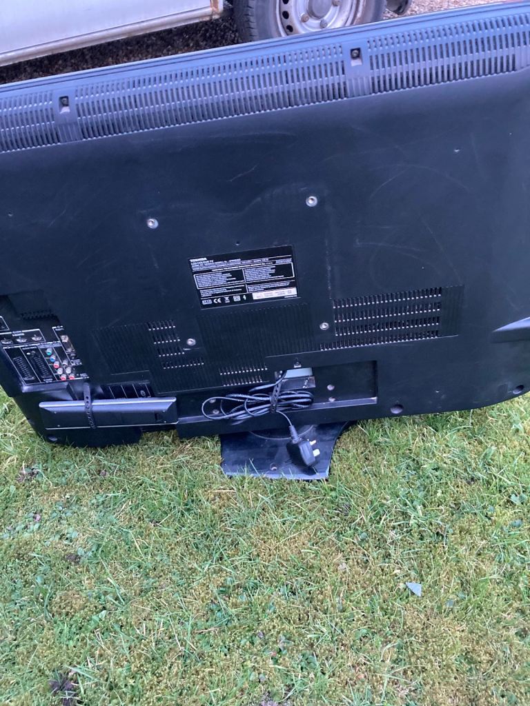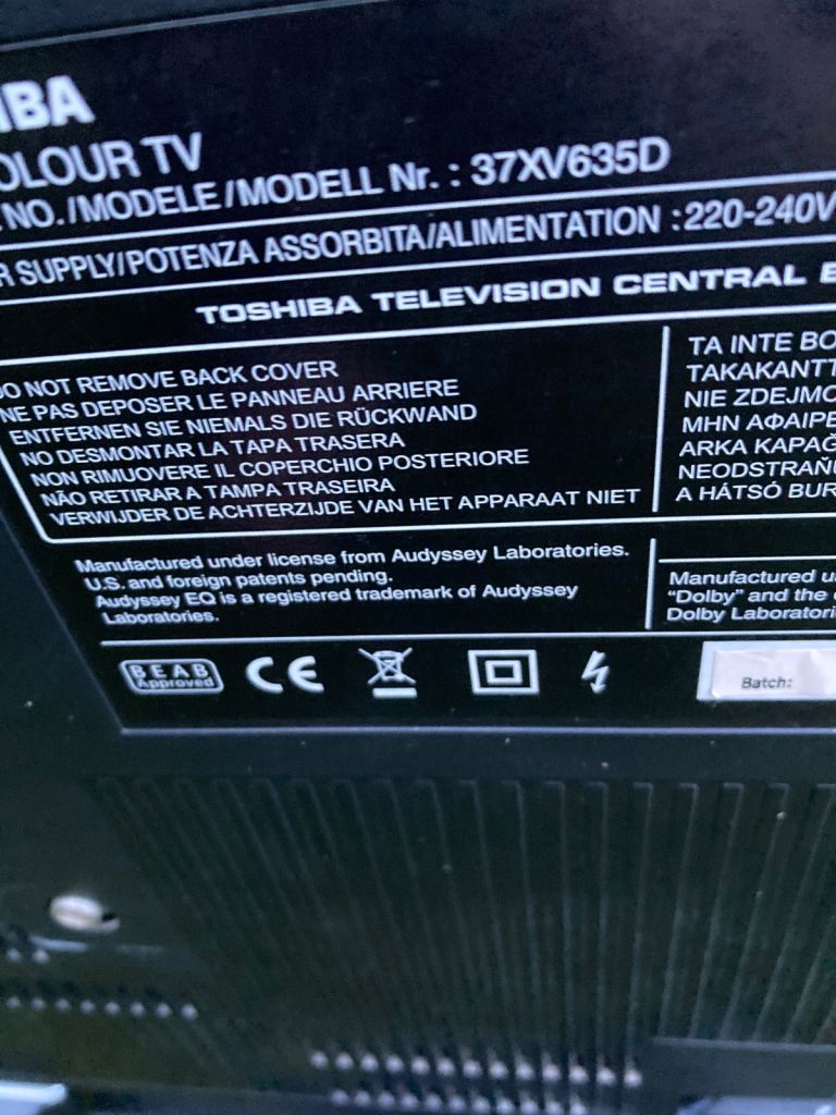 Toshiba 37inch complete with remote and power supply, it has a few faint lines come up now and again,so spares or repairs