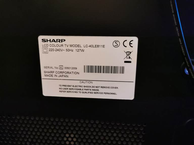Sharp Aquos lcd TV, please Google model number to see if it's right for you, sold as seen no returns refunds can be seen working on collection
