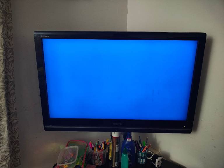 Large screen and Good for gaming, lacks remote, but buttons on front, Very good condition.
