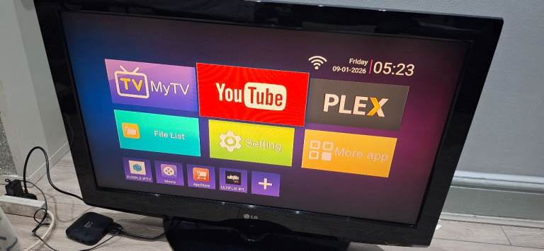 LG 37 INCH LCD TV WITH FREEVIEW PERFECT WORKING ORDER FREE DELIVERY and installation, if your on a budget and want a reliable working tv this is for you. Built in Freeview tv channels 2 HDMI ports and 2 scart sockets for your sky virgin box or fire tv stick, it comes with original remote control and table top stand the pictures are with the tv connected to an android box. Best to ring me for quicker response.