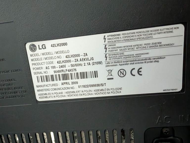 Selling my LG 42” Full HD TV (Model 42LH2000).