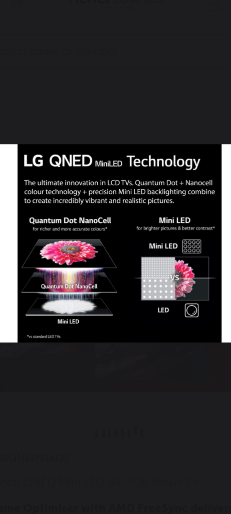 This television has cutting edge QNED MINI LED technology which provides an excellent picture, that exceptional images whilst it Energy Rating D, means it's very cheap to use and keeps your electricity costs are very much lower than televisions with lower E to G energy ratings which saves you approximately £300 per year, based on average daily use.
