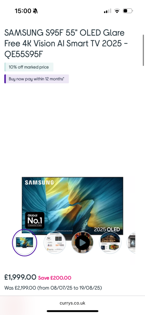 LIKE NEW OLED SAMSUNG S95F 55 inch Glare Free 4K Vision AI Smart TV 2025 - 55S95F