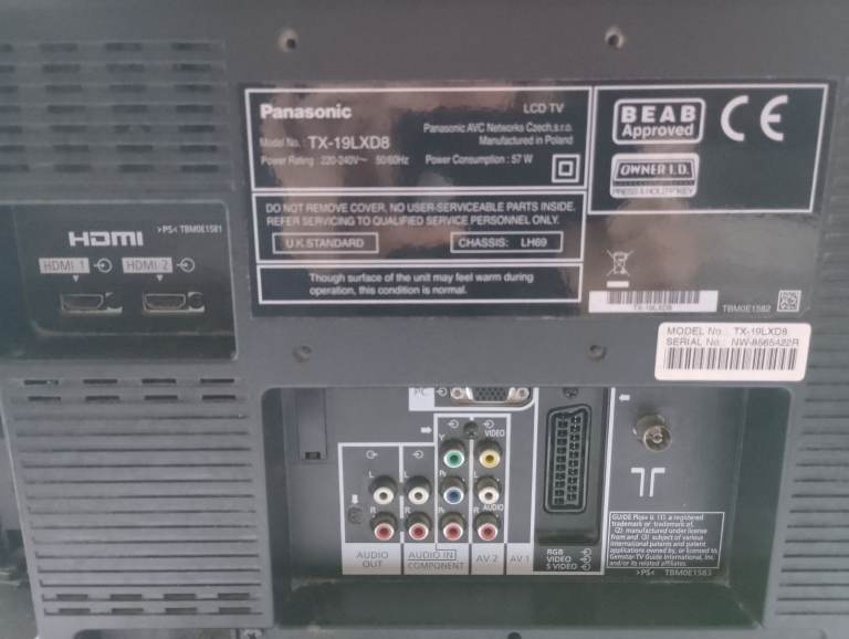 Really good quality Panasonic 19" LCD colour TV with remote and ariel cable.