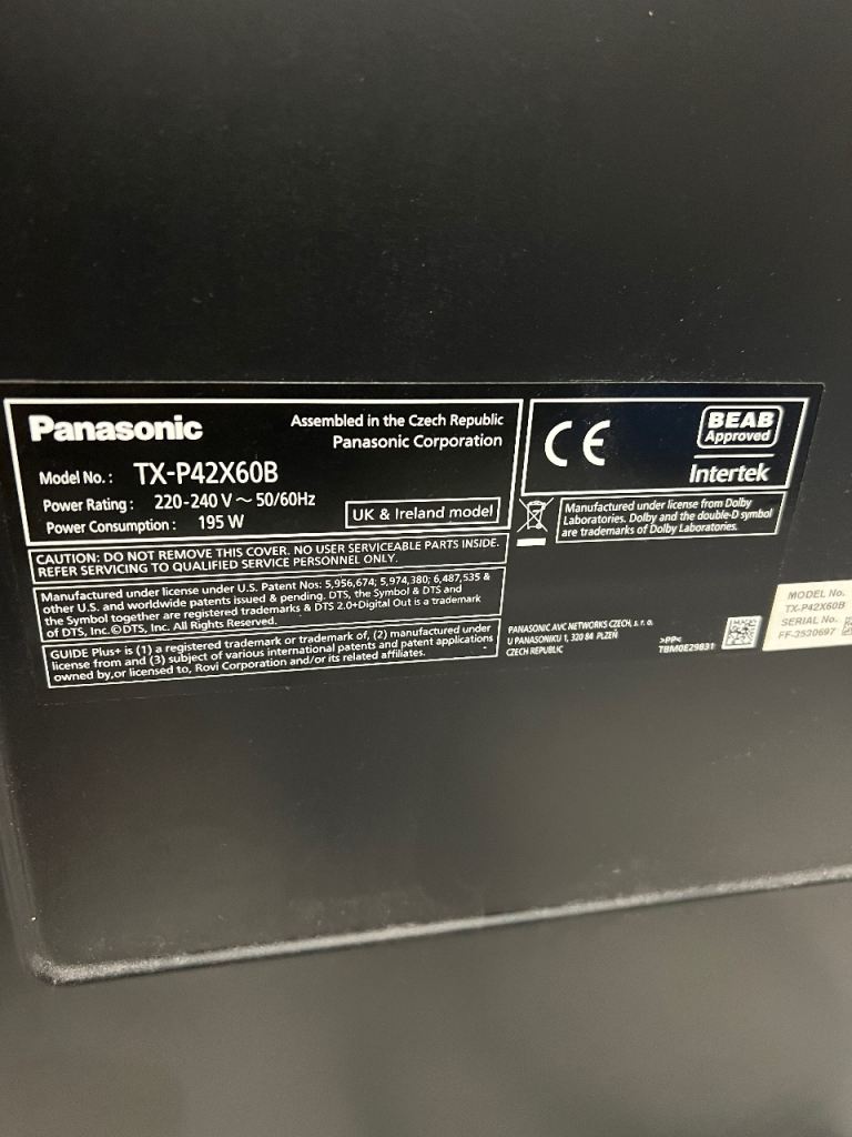 Posting for 5+ yearsPanasonic 42” Plasma TV – TX-P42X60B – Bargain