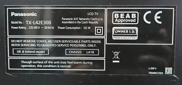 Panasonic TX-L42E30B 42 inch LCD TV, in very good condition