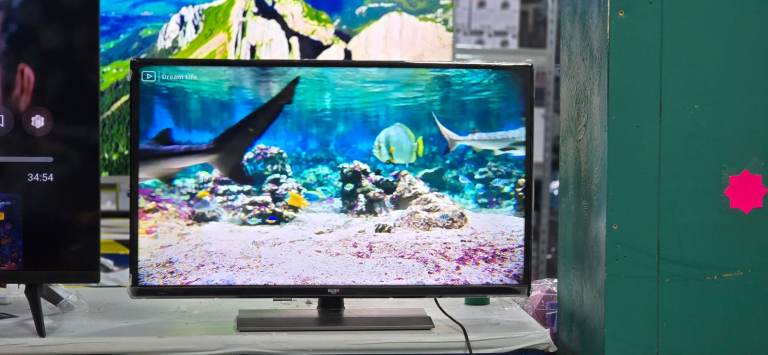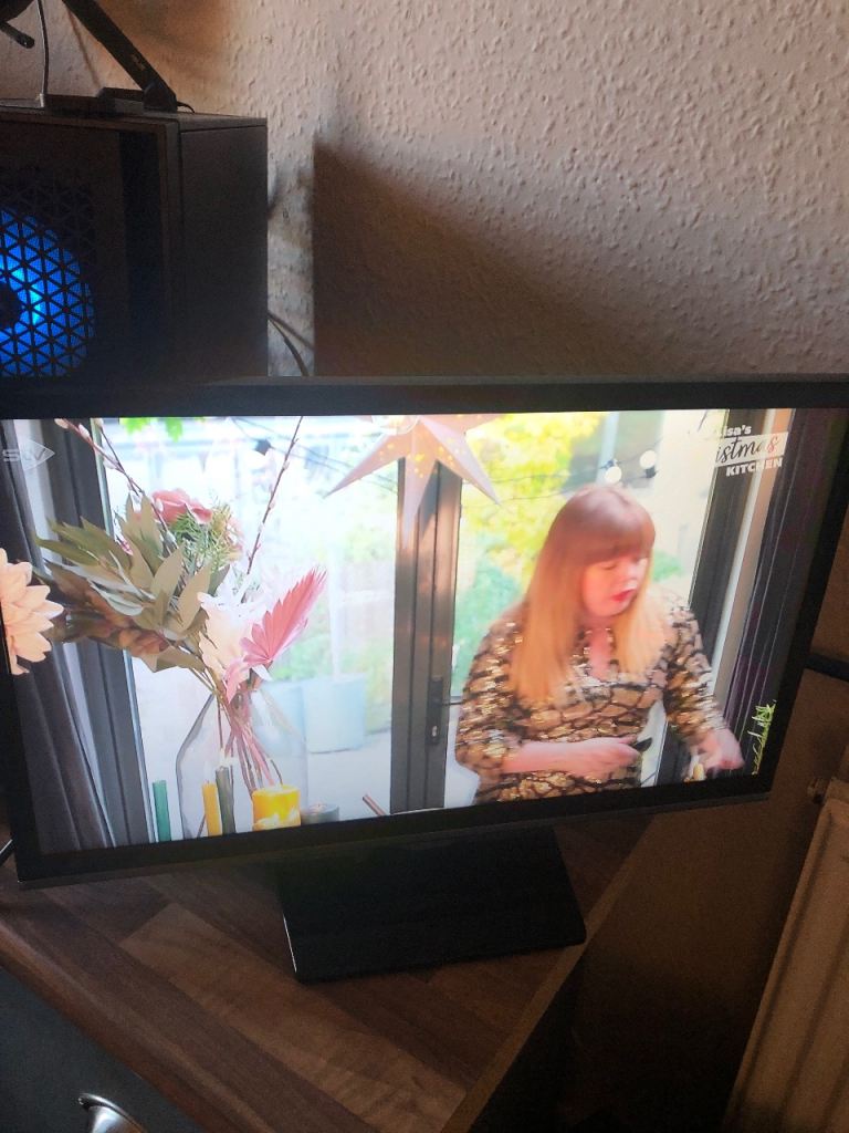This is a used item, so it does have some signs of wear like light scratches or scuffs on the frame and stand, but nothing that affects the picture or performance. Comes as seen – no box or accessories.
