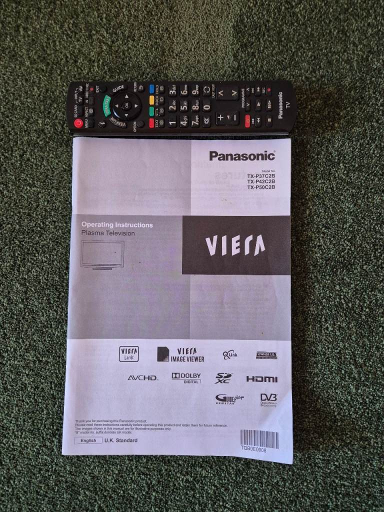 Panasonic Viera plasma TV, 42 inch screen, model number TX-P42C2B with remote control and operating instruction manual. Fully operational and in excellent condition. Collection only.