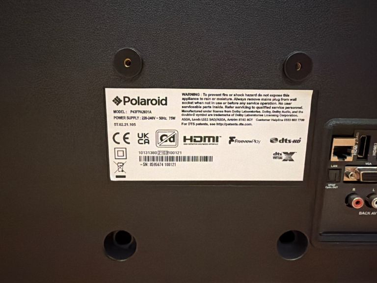 Polaroid 43″ LED TV (model P43FPA2031A) in very good working condition.