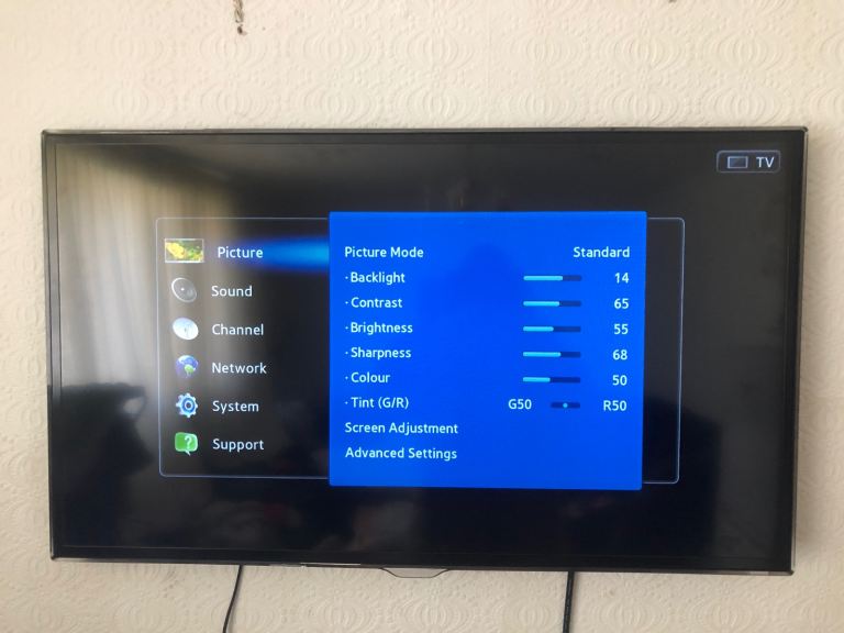Working well, great condition, some light sticker marks on stand, note - only one HDMI ports works. All ready to go otherwise!