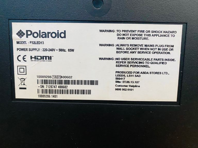 Polaroid TV P32LED13 32" INCH HD Ready(720p) LED Television. With Freeview etc.