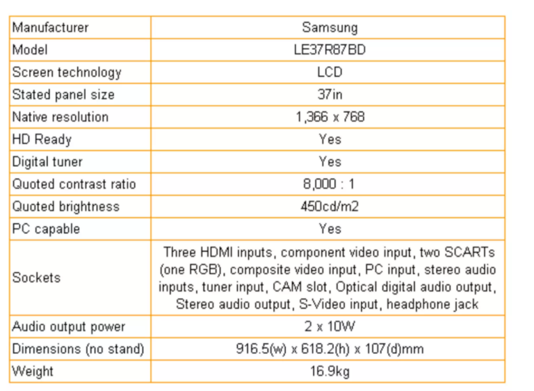 Samsung 37” HD LCD TV
