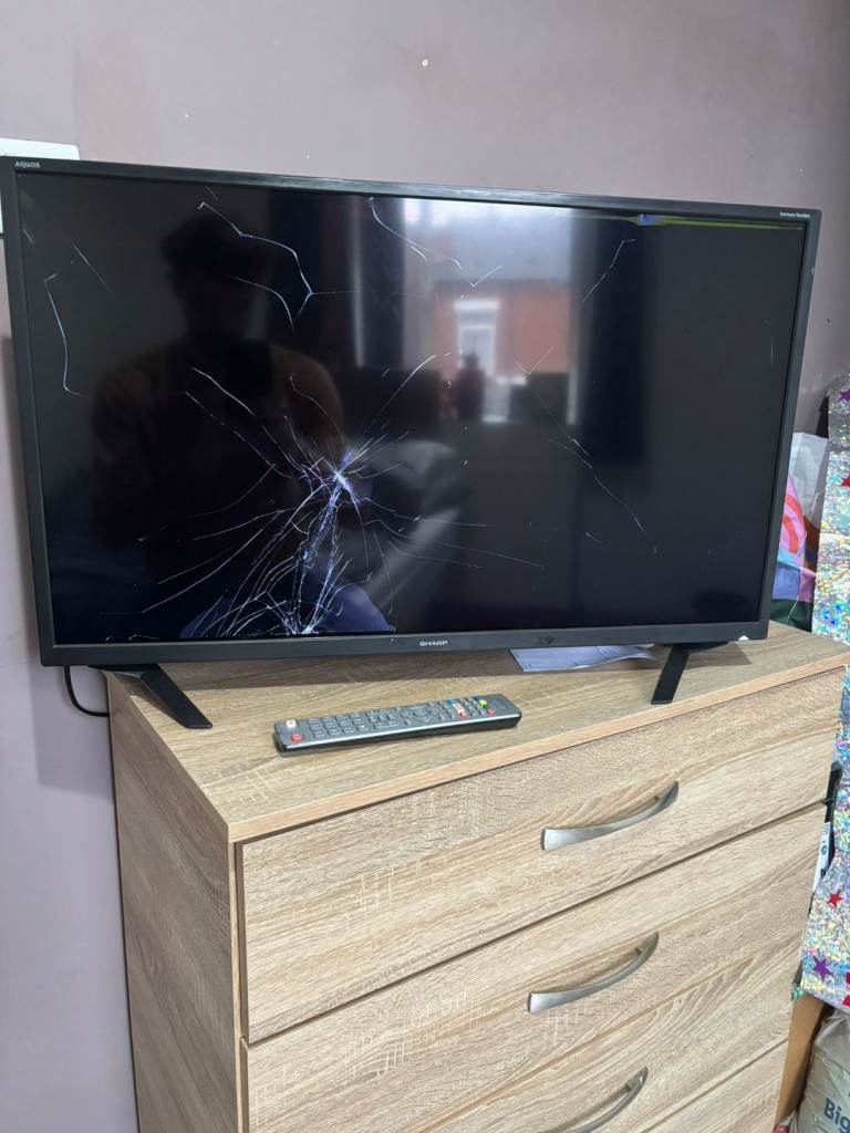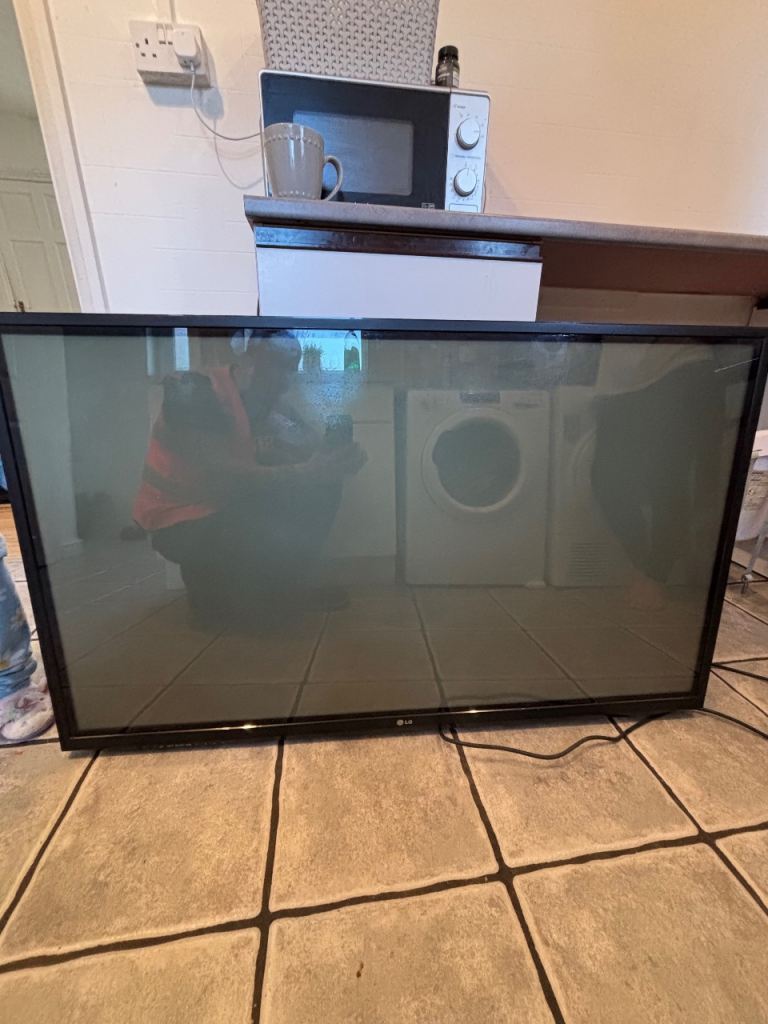 There is a slight "shadow" on the left of the screen, it's been like this ever since we got it, you can see it in the last two photos on the advert