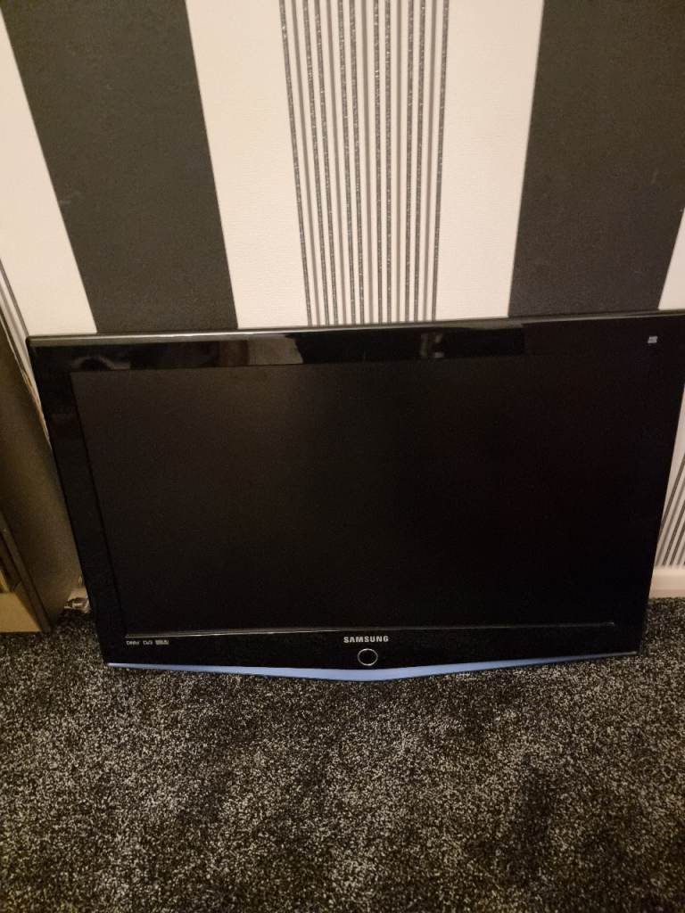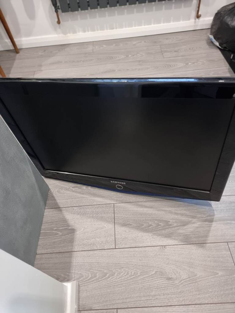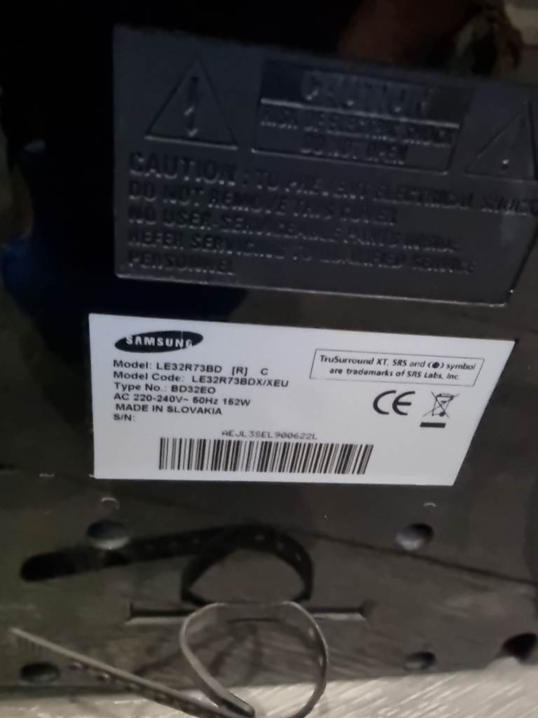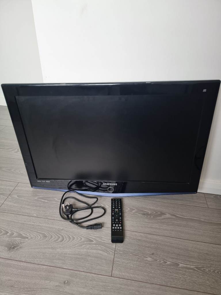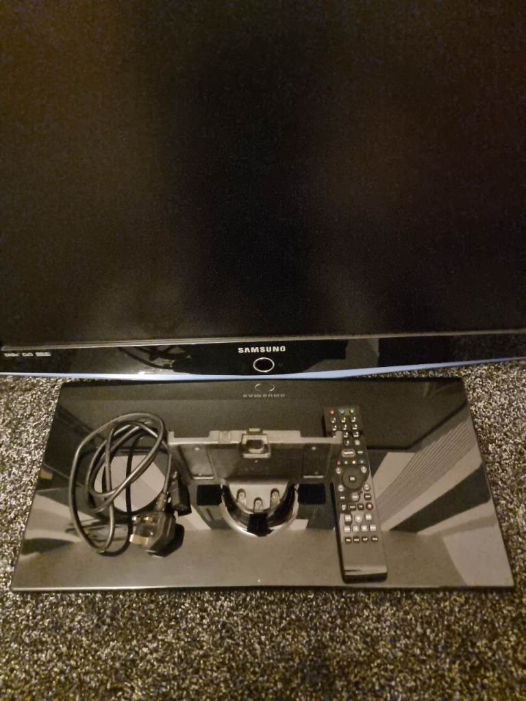 SAMSUNG TV 32INS BLACK WTH STAND REMOTE. POWER LEAD.