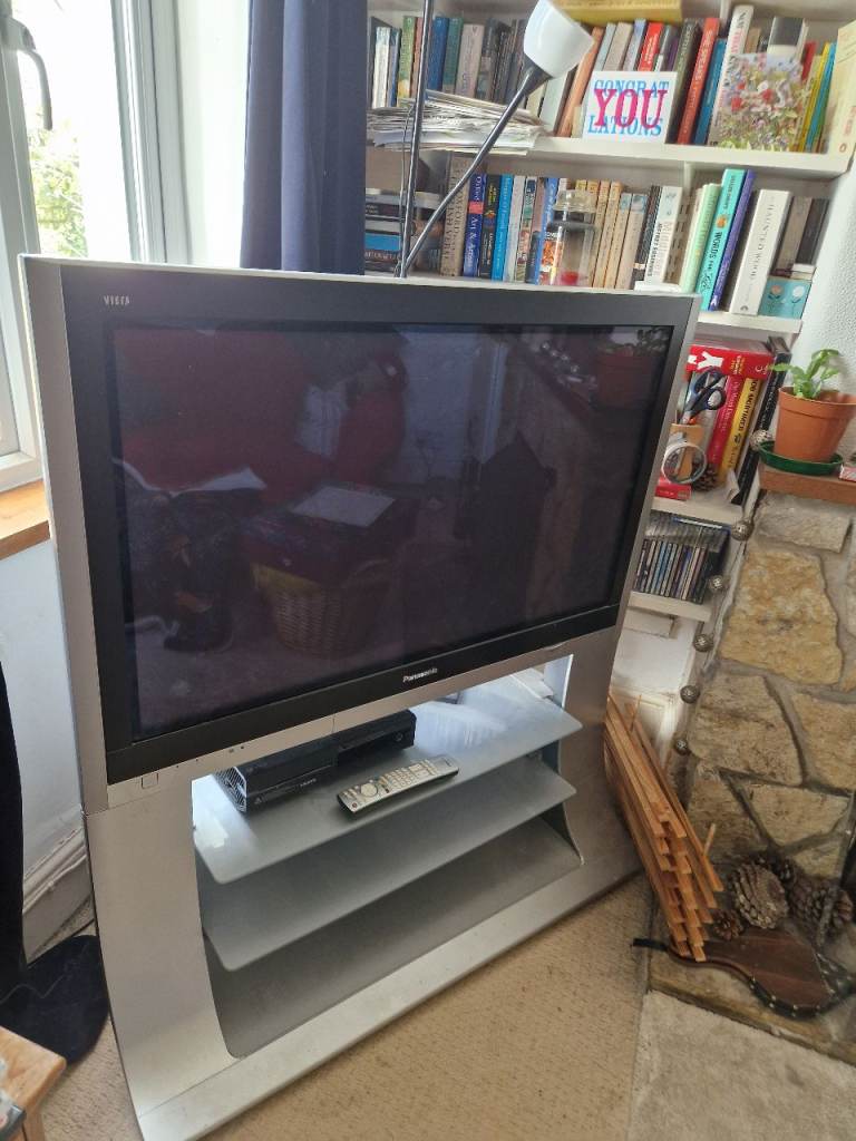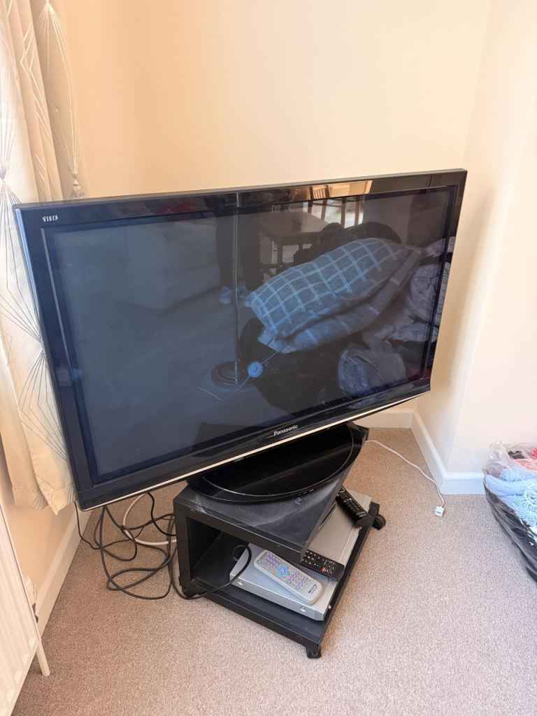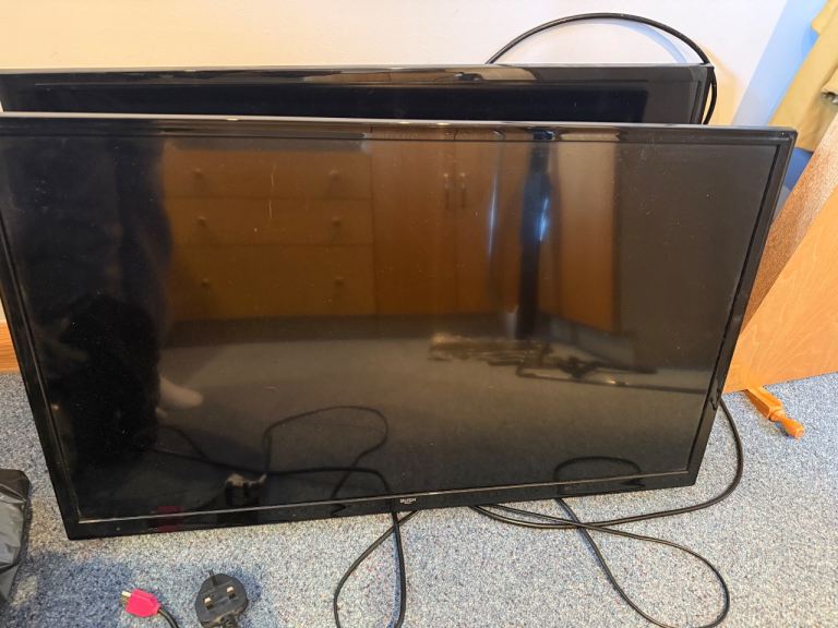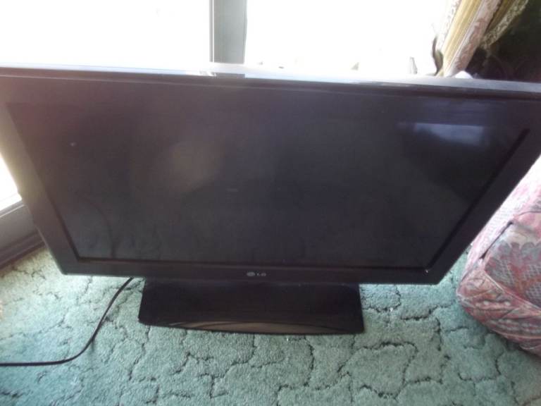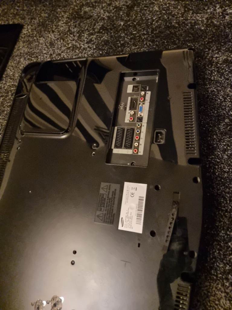 SAMSUNG TV 32INS BLACK WTH STAND REMOTE. POWER LEAD.