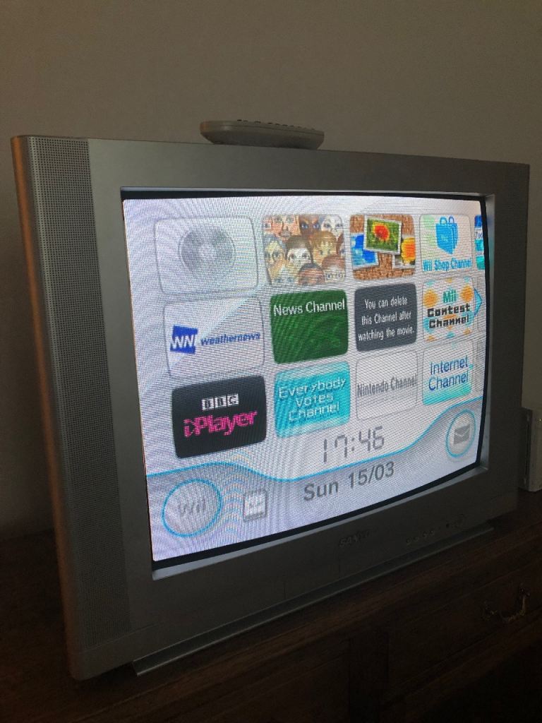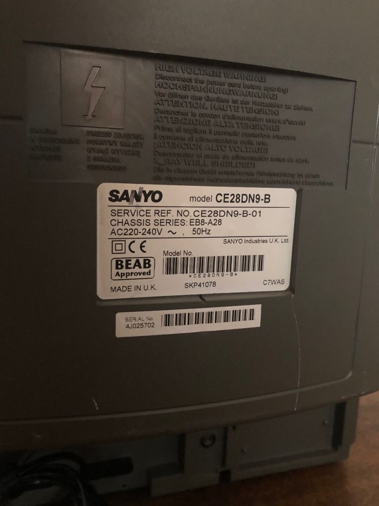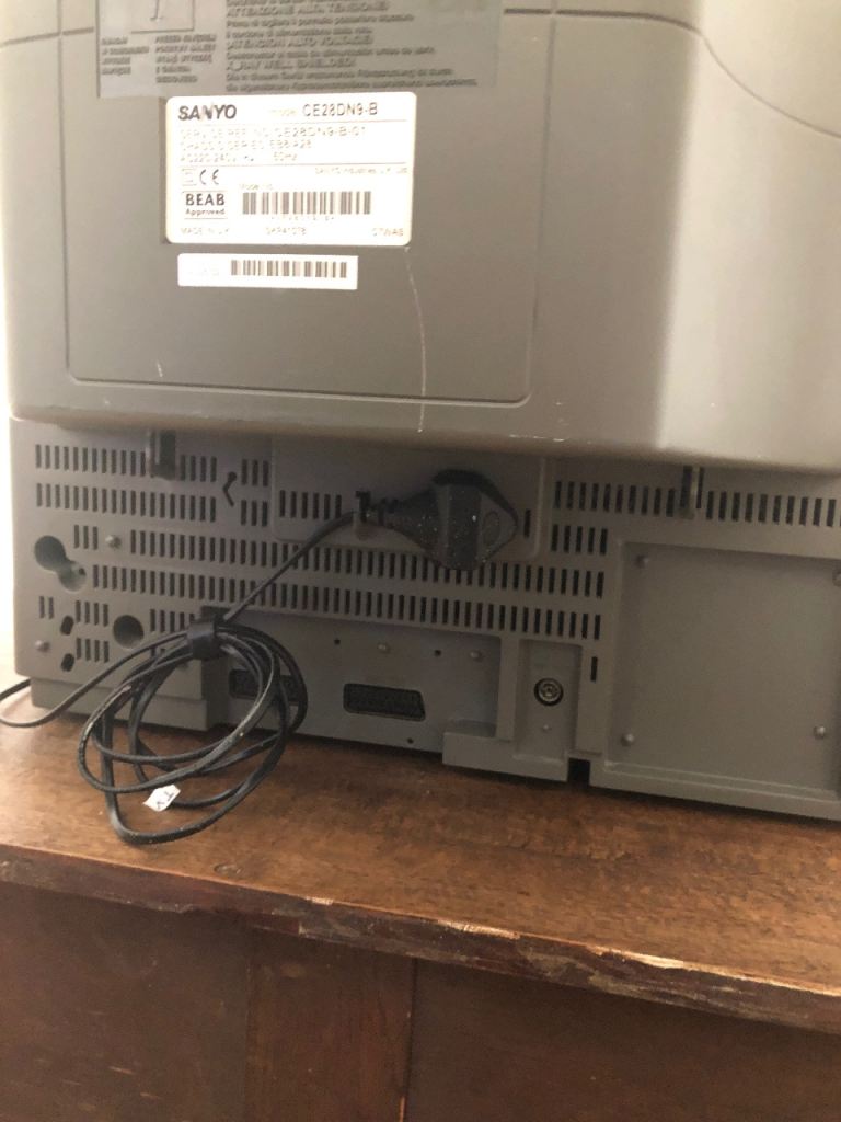 Large Sanyo 28” CRT TV. Model CE28DN9-B. Comes with remote. In great working condition. Retro gaming consoles look amazing - the TV has 3 inputs (2 SCART on back and 1 composite on front with headphone jack)
