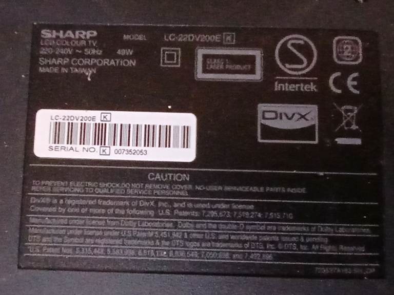 Sharp LC-22DV200E - 22" Diagonal Class LCD TV - with Built-in DVD Player - 720P 1366 x 768 - Black
