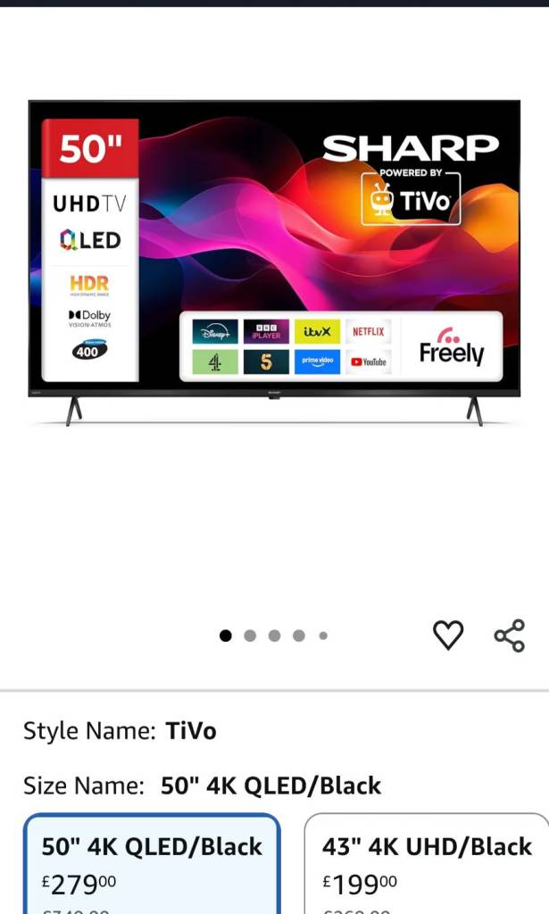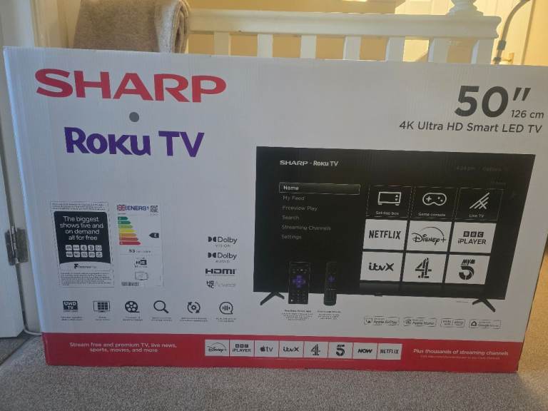 50"/126cm Sharp Roku 4k Ultra Smart LED TV. Brand New in the box unopened. £200
