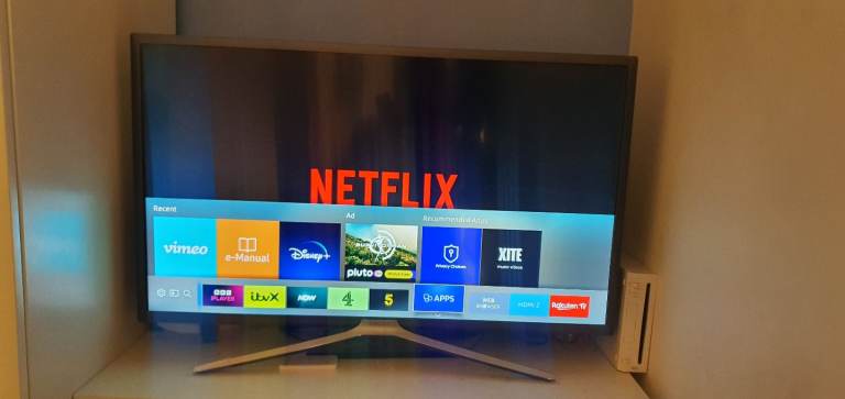 32 inch Samsung smart tv in good condition. Tv works fine. It's has wifi builtin and many apps builtin. Nice tv overall, Comes with remote, stand,