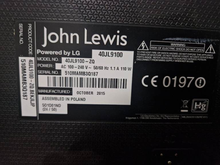 Hi I am selling a John Lewis powered By LG Smart TV 4K Ultra HD Led 40-inch