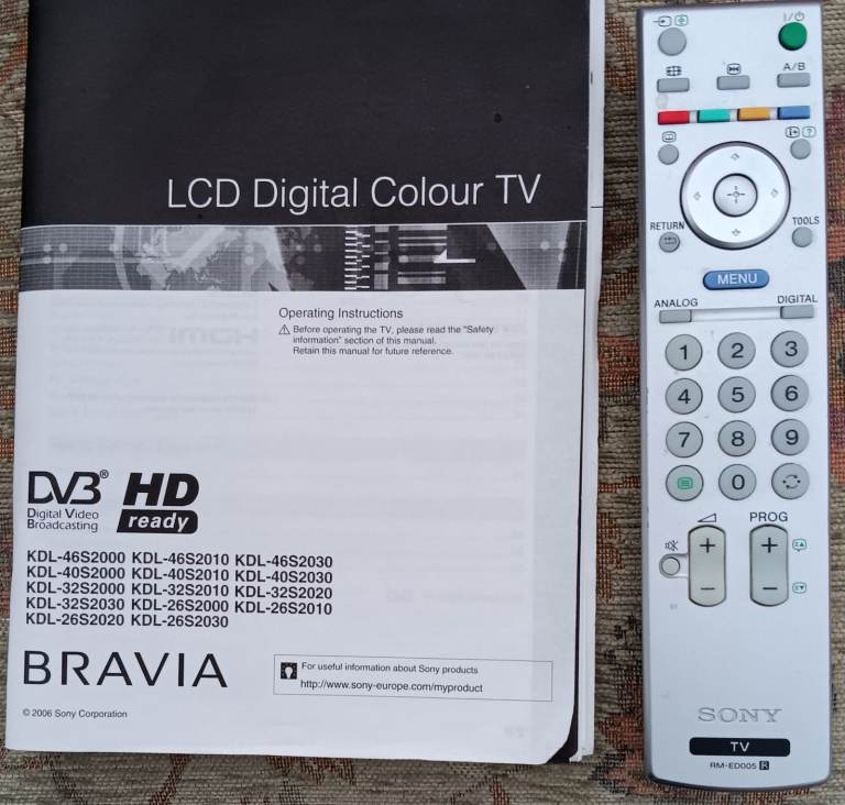 Sony 26 inch LCD digital colour TV with stand as shown in pictures, Sony model KDL 26S2030 with remote control and instruction manual tested and shown working in pictures. Needs a TV aerial connection , not smart, stand optional. Cash on collection please, located in Stubbington.