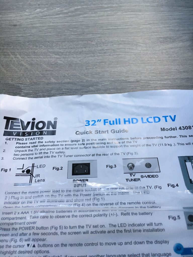 32 inch TV for sale. Excellent condition, used in spare room so very little use.