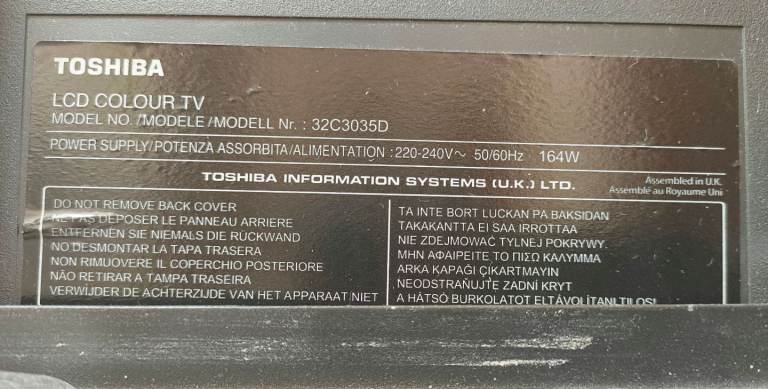Toshiba 32C3035D 32 inch LCD TV, in good condition