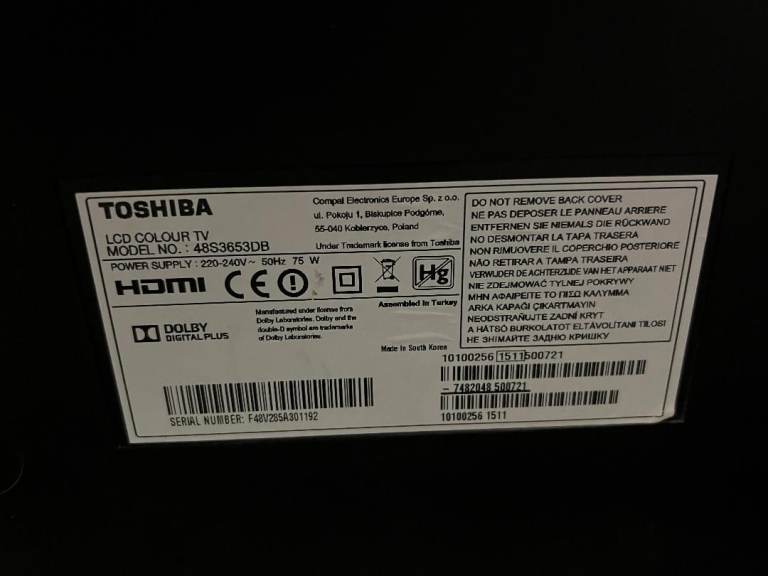 For sale is my Toshiba 48 inch, Full HD Slim LED TV with Freeview HD in excellent condition and fully working. The picture and sound is top quality.