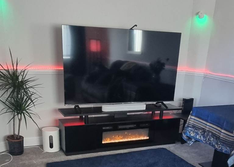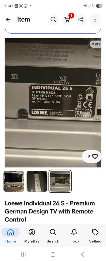Features: Integrated speakers with Virtual Dolby Surround, multiple AV inputs (RGB/ YUV), and iconic aluminium Loewe stand