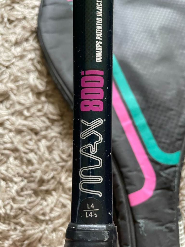 Selling a Dunlop Max 800i L4 adult tennis racket – a vintage model featuring an injection-molded frame with Grafil XAS technology. This racket is designed for players seeking a blend of power and control.