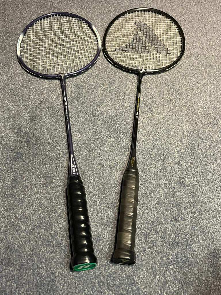 Selling two excellent badminton rackets, each with its original cover: