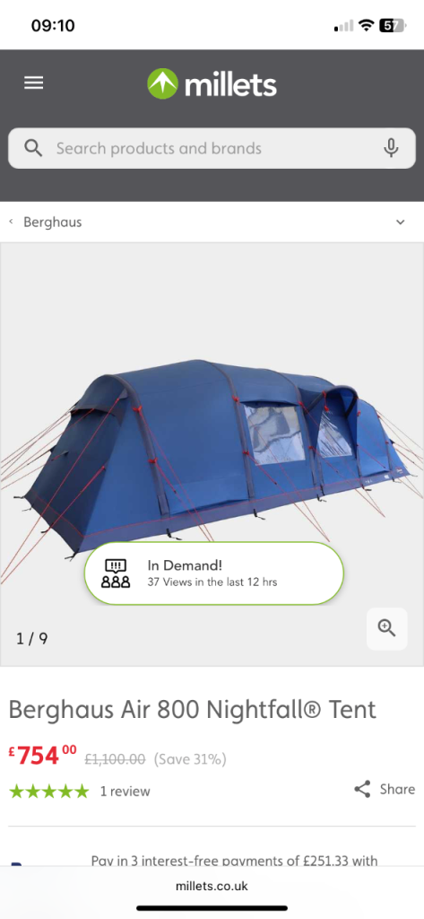 Lovely spacious 6 berth tent. Outdoor Revolution Airedale 6.0s tent bought in May 2022. Used only twice so new condition.